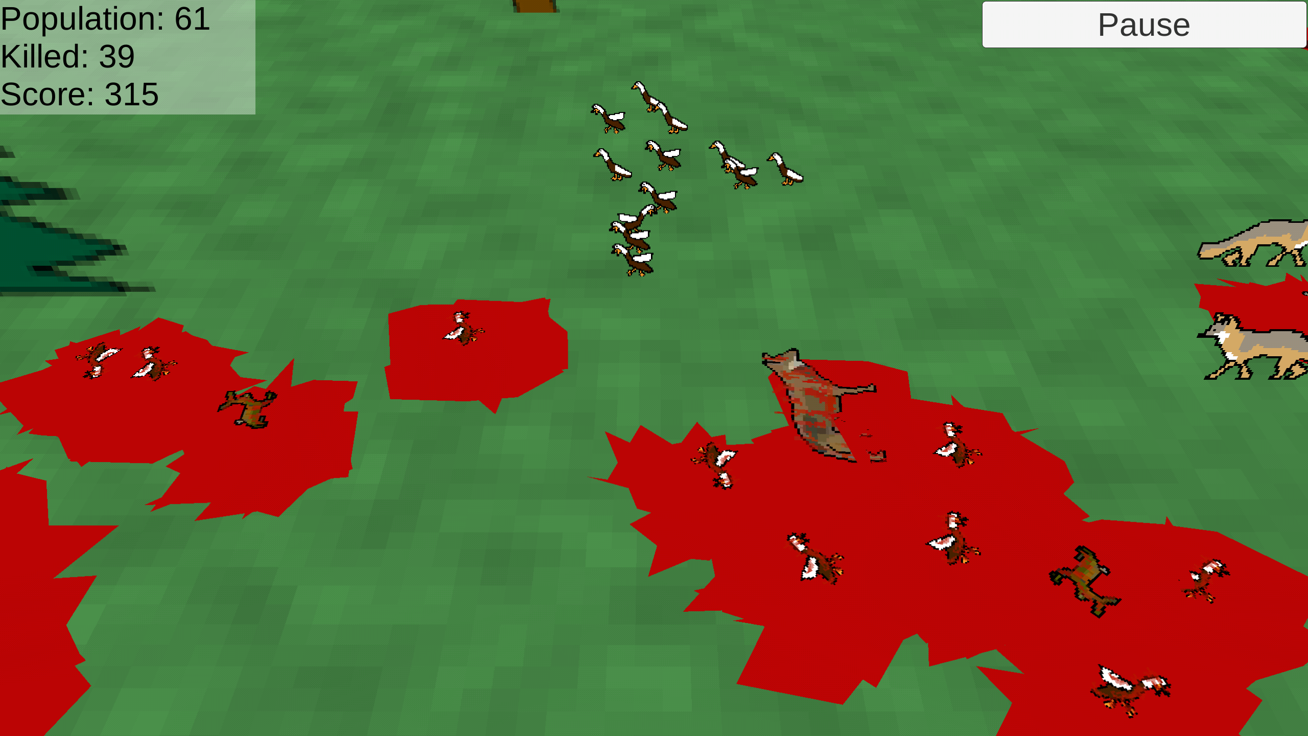 In this game you control a horde of hungry zombie ducks that want to eat other animals. Play it in your browser!